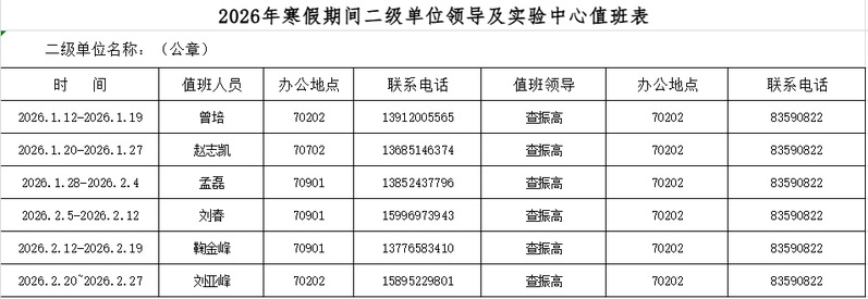 请各实验分室根据实际情况安排好假期工作人员。